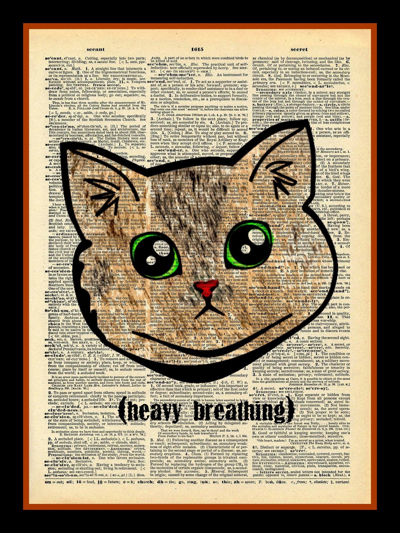 Please note: dictionary pages are chosen on a random basis. Coloring of pages differ by book so may be more or less yellowed than online version. Images are printed on actual dictionary pages using a high quality laser printer. Colors of image may vary from screen to page.