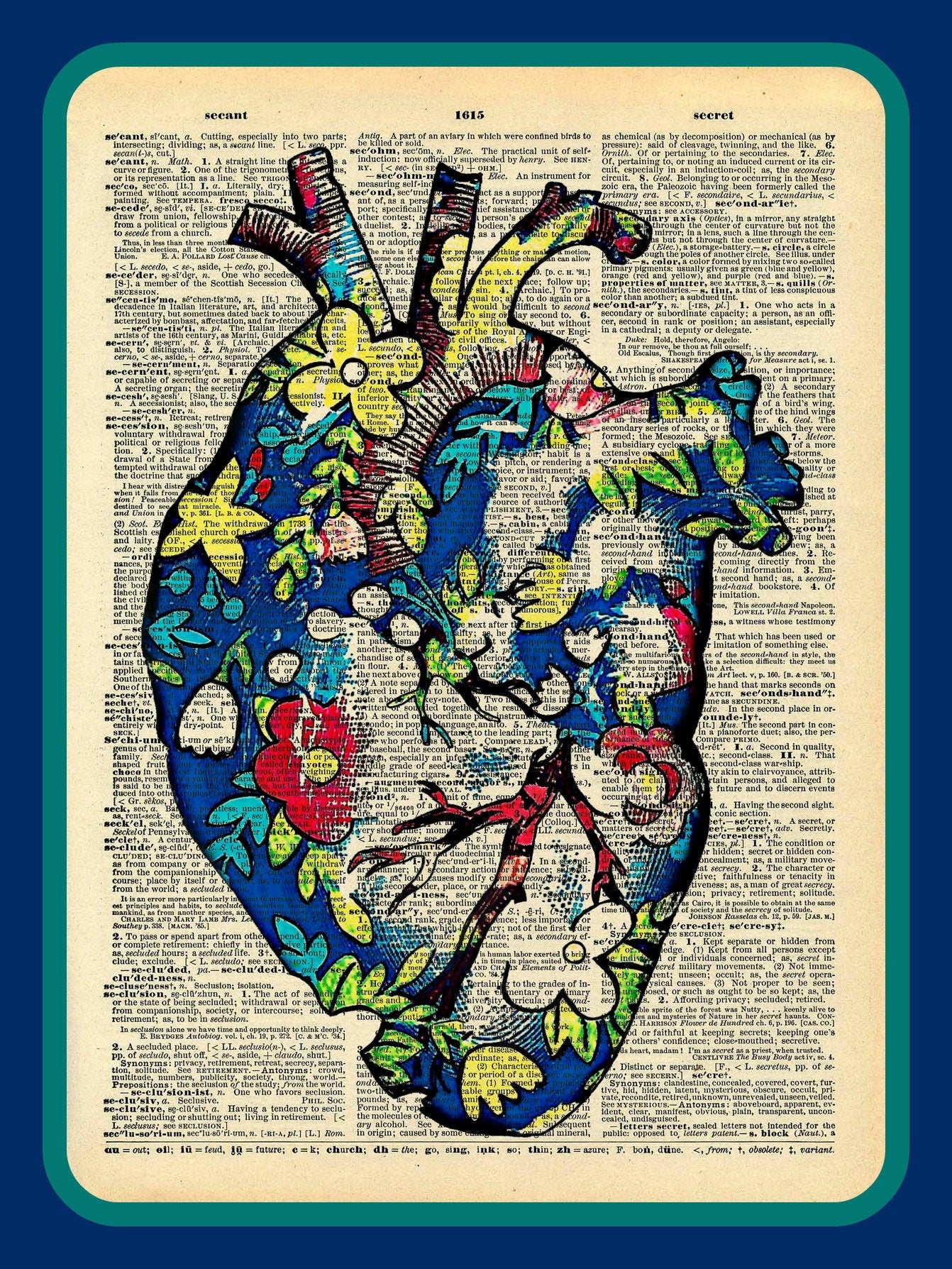 It can also be scaled down to fit into a 5 x 7 or 4 x 6 frame. Images are printed on a full Size dictionary page, and can be trimmed down to fit 5x7 or 4x6 frame. Request at time of check out, or email me with preferences.